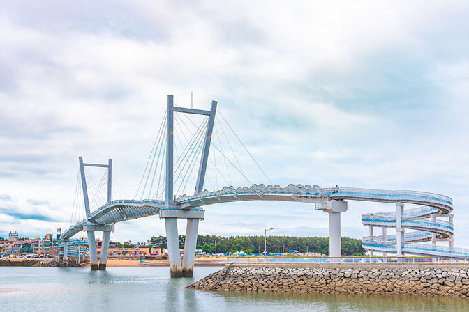 태안 꽃게다리는 태안 드르니항에서 안면도 백사장항까지 걸쳐 있는 꽃게를 닮은 다리이다. 드르니항과 안면도 백사장항을 잇는 해상인도교 꽃게다리는 드르니항쪽 다리 입구에는 꽃게, 백사장항쪽에는 새우 모양의 조형물이 있다. 꽃게와 새우가 많이 잡힌다는 것을 상징하며 과거에는 대하랑꽃게랑이라는 이름으로도 불렸다. (자료출처 : 대한민국 구석구석 - korean.visitkorea.or.kr)