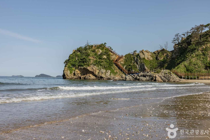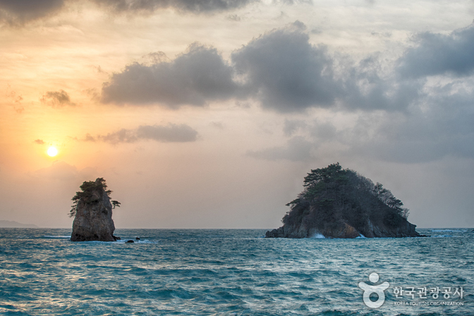 충남 태안군 안면읍 광지길에 자리한 꽃지해변은 5km에 이르는 백사장과 할배바위, 할매바위가 어우러져 그림 같은 풍광을 보여준다. 2개의 바위 너머로 붉게 물드는 낙조는 태안을 상징하는 아름다운 풍광 중 으뜸으로 꼽힌다. (자료출처 : 대한민국 구석구석 - korean.visitkorea.or.kr)